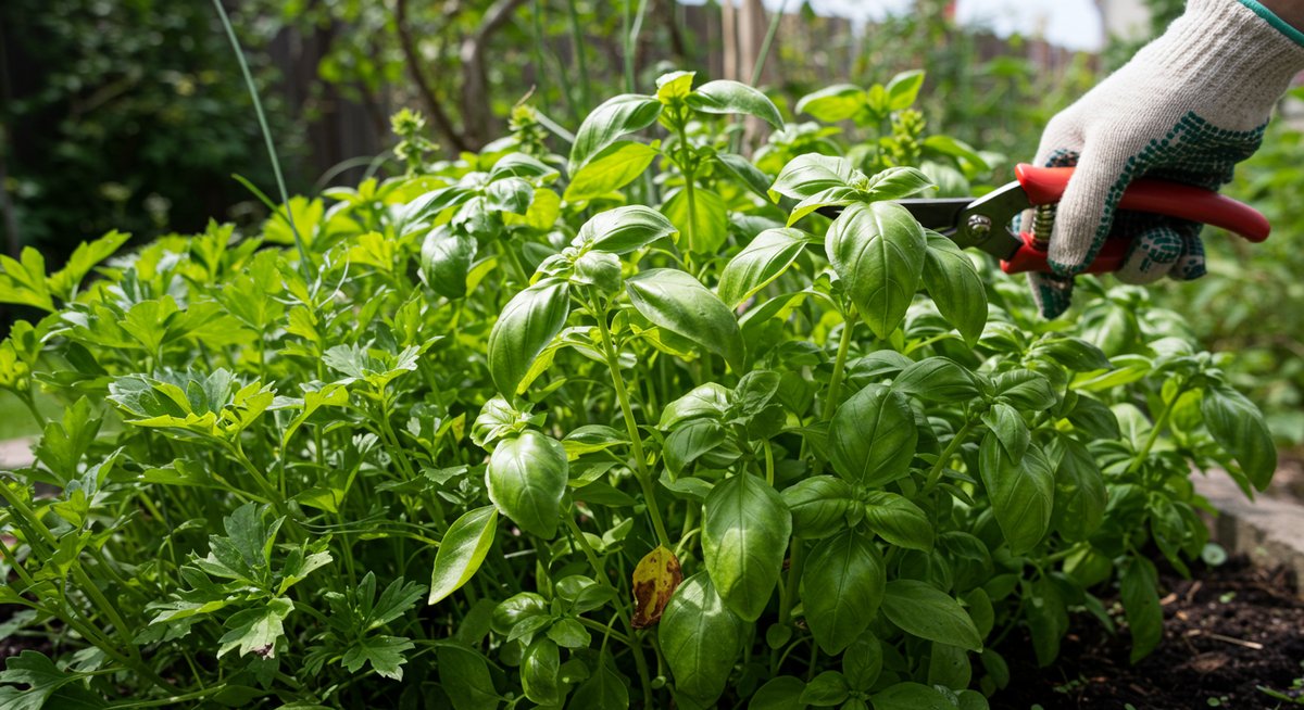 摘心は脇芽を促し葉をふんだんに採れるようにするために重要です。主茎が20〜25cmほどになったら上部を切ると側枝が伸びます。花芽を見つけたら早めに摘み取ることで葉の風味を維持できます。