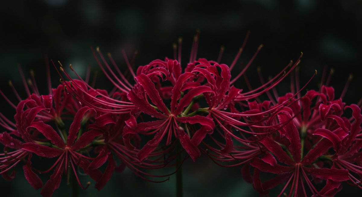自然界で完全に黒い彼岸花はほとんど存在せず、実際には非常に濃い赤や褐色、ワインレッドに近い個体が多いです。光の当たり方や花弁の質感で黒っぽく見えることがあり、それが「黒い彼岸花」の誤認につながります。
