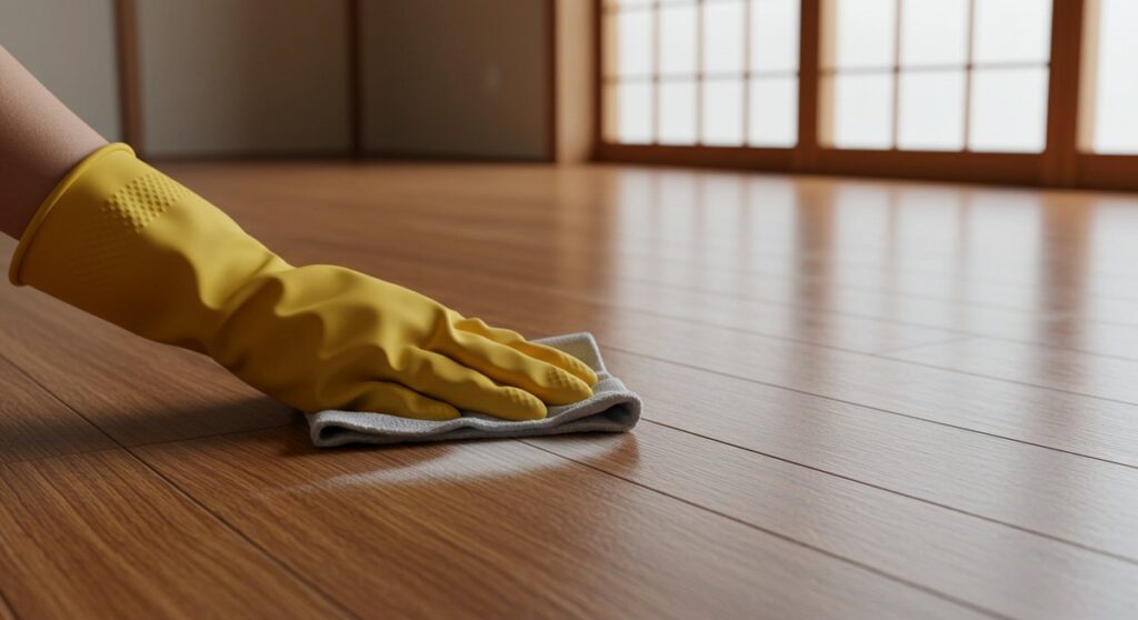 フローリングにゴムマットの跡が残る理由や化学反応の仕組みを丁寧に説明します。効果的な掃除方法や頑固な跡への対処法、予防策やリフォームの選択肢も網羅しています -