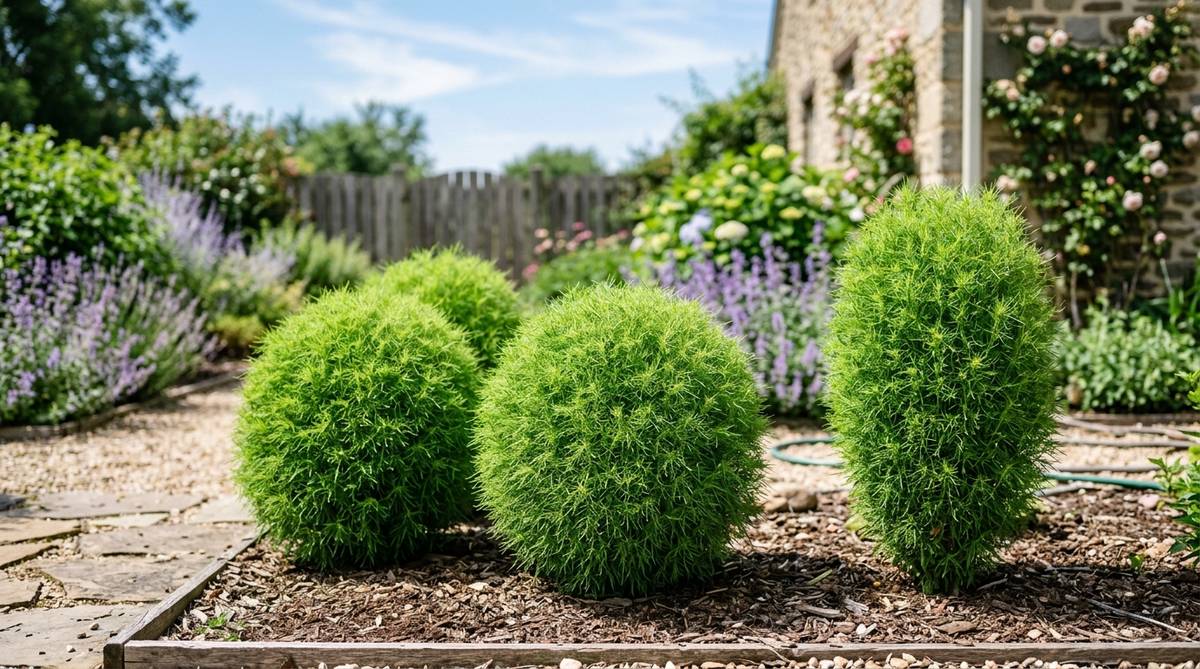 コキアが完璧な丸い形に育った時、その存在感は他の植物を圧倒します。整然と並んだ緑の玉は、まるで庭に現れた不思議なオブジェのようで、道行く人の目を釘付けにすること間違いありません。多くの草花が不規則に広がる中で、幾何学的な美しさを持つコキアは、庭の景観をピリッと引き締める「アイキャッチ」としての役割を完璧にこなしてくれます。