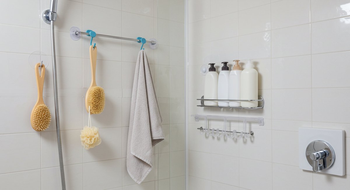 浴室は高温多湿であり、使用する粘着剤やプラスチック部品が熱や蒸気で劣化することがあります。耐熱・耐水と明記された製品を選び、特にシャンプーの詰め替え容器など重いものを載せる場合は耐荷重を確認してください。