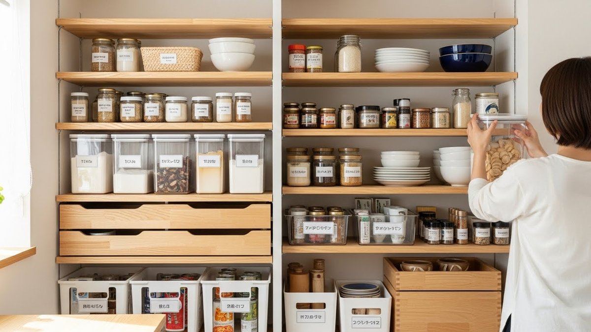 180文字程度の導入文を書いてください。パントリーの奥行き45cmは、キッチンの動線や収納量に影響します。狭すぎず広すぎない利点を活かすために、物の量や取り出しやすさを意識して棚配置や道具を選ぶことが大切です。奥に入れた物が埋もれないよう、見える化と動線確保を優先しましょう。